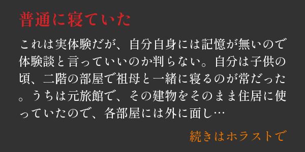 「実家が田舎で鍵をかける習慣がない」の朗読動画を探しています。YouTubeでこの話の朗読動画を見つけたらぜひ投稿していってください。
