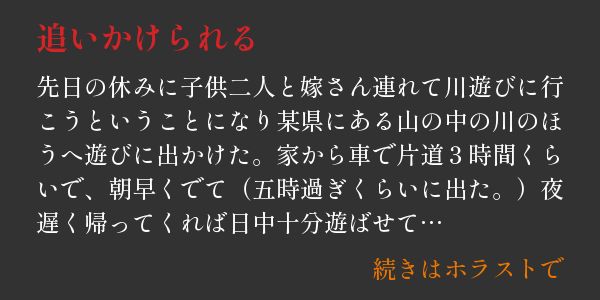 私は、ある晩夢を見た。 家の前に一台の霊柩車が止まり、男が降りてきて、私に言う・・・「もうお一人様乗れる余裕が御座いますが、いかが致しますか?」そこで私は目を覚ます。不思議な事に、その日から、毎晩同じ夢を見るようになった。 霊柩車でやって来る男は、毎晩私に同じ質問をしてくる。「もうお一人様乗れる余裕が御座いますが、いかが致しますか?」少し気味が悪いと感じながらも、まあ、そんな事もあるだろうと、私は気にせずにいた。 ある日、私はデパートへ買い物に出かけた。一通り店内を見て回り、最上階のレストランで昼食を済ませ、そろそろ帰ろうかとエレベーターの前まで来ると、多くの人がエレベーターを待っていた。 私は心の中で舌打ちをする。(この人数では一回で乗り切れないかもしれないな・・・)そんなことを考えている間にエレベーターが最上階に到着した。 客達が次々にエレベーターに飲み込まれて行く。私が乗り込む番になる。 見た感じ、エレベーターは満員だ。しかし、重量オーバーを告げる不愉快なブザーは鳴っていない。 どうしようか?と思案していると、エレベーターガールが微笑みながら、私に言った・・・「もうお一人様乗れる余裕が御座いますが、いかが致しますか?」ドキッとした。毎晩、夢に出てくる霊柩車の男と、まったく同じセリフだ。 「いえ、結構です」私は反射的にそう答えていた。エレベーターガールは丁寧に頭を下げると、ゆっくりエレベーターのドアが閉まっていった。 次の瞬間、金属が引きちぎれるような音と、凄まじい轟音。数秒後に地震のような激しい揺れ・・・・・・エレベーターは地下まで落下していた。 エレベーターに乗っていた客とエレベーターガールは即死だったそうだ。その日以降、私が再び、あの不思議な夢を見る事はなかった。
